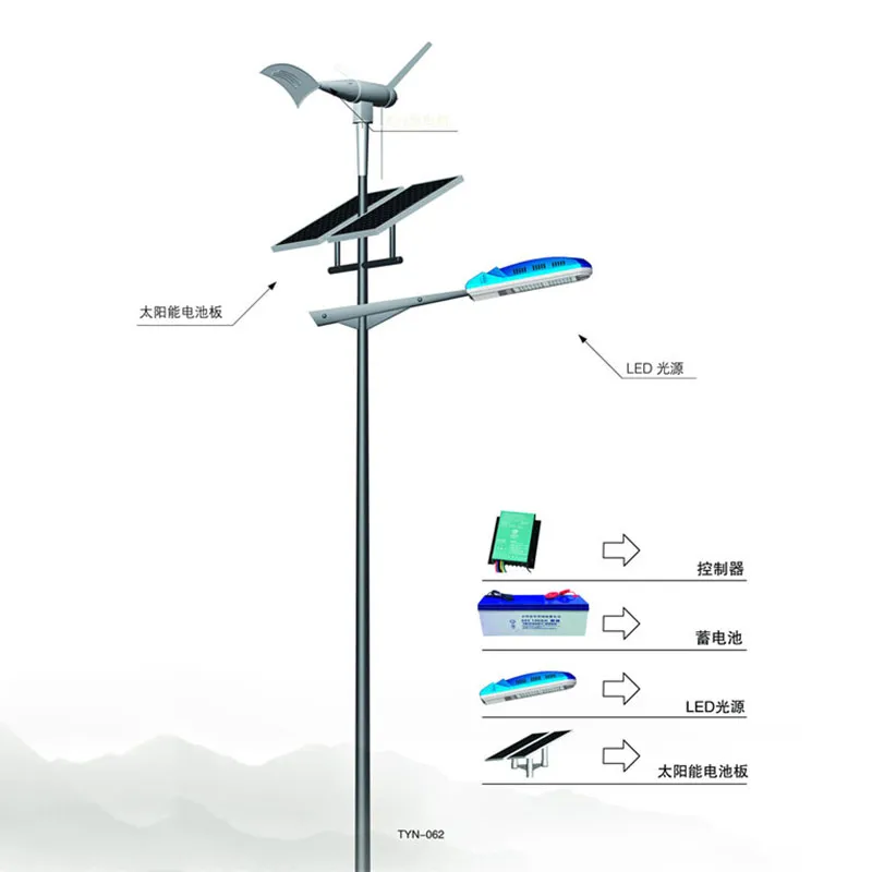 Ветро-солнечный гибридный уличный фонарь – это автономная осветительная система, объединяющая ветровую и солнечную энергию, которая работает через совместное питание от вертикально-осевого ветрогенератора и солнечных панелей, подходит для районов без покрытия электросети или с высокой стоимостью передачи электроэнергии. При наличии ветра без света: ветрогенерация является основной, солнечная энергия дополняет; При наличии света без ветра: солнечное питание является основным; При достаточности ветра и света: двойная система совместно генерирует электроэнергию, повышая стабильность энергоснабжения.